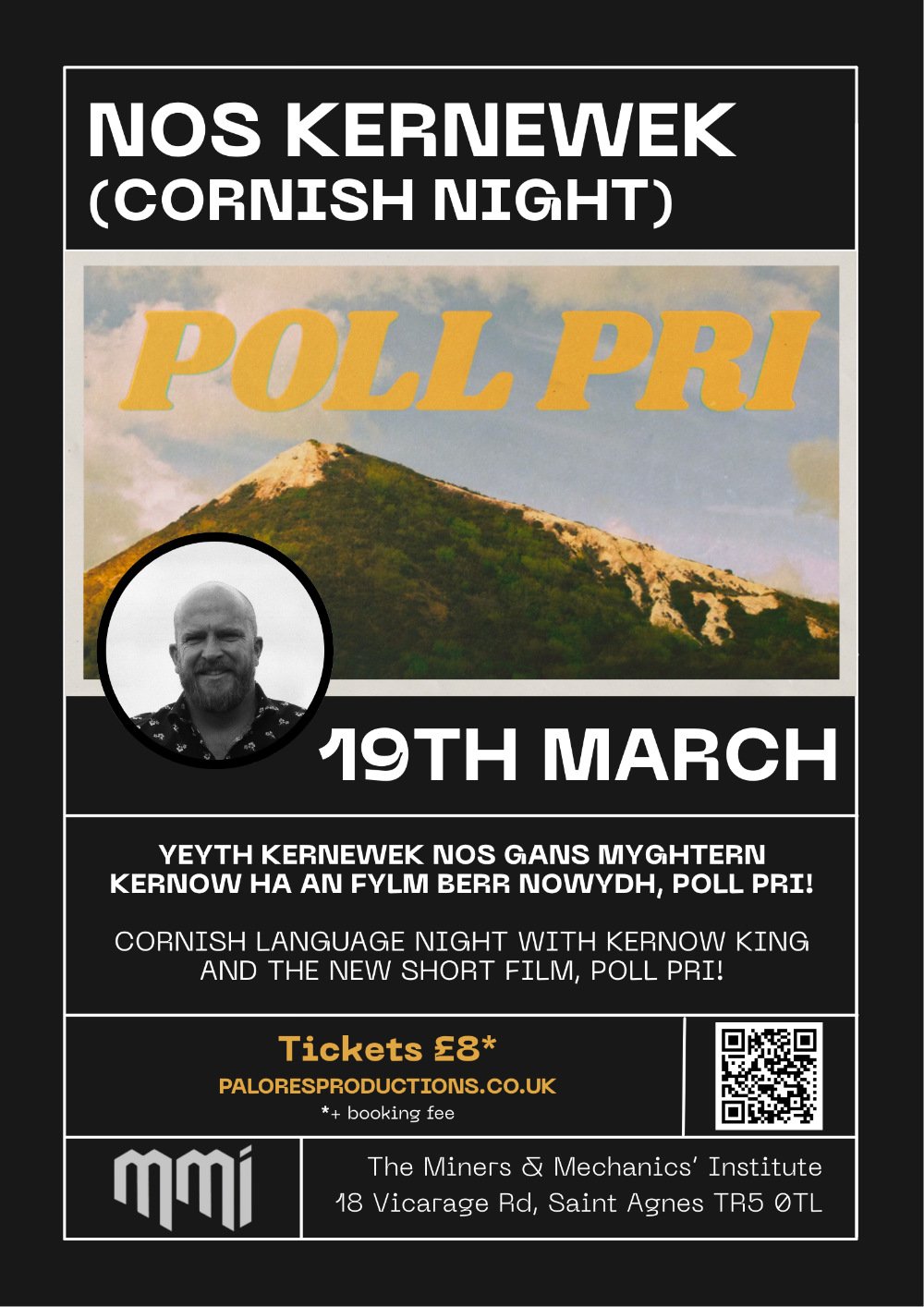 Cornish language night with Kernow King and the new short film, Poll Pri!